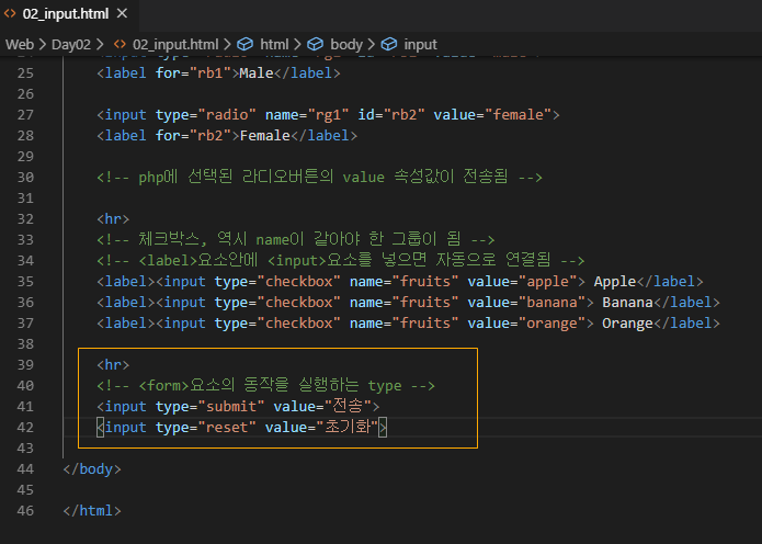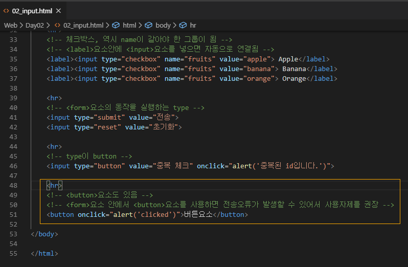 <!-- <form>요소 안에서 <button>요소를 사용하면 전송오류가 발생할 수 있어서 사용자제를 권장 -->