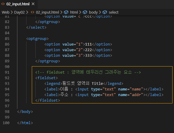 <!-- fieldset : 영역에 테두리선 그려주는 요소 -->
