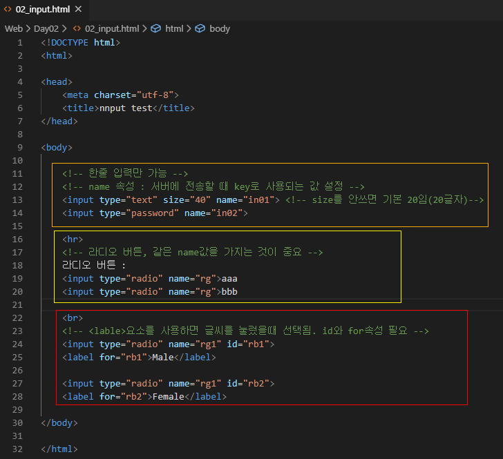 <input type="text" size="40" name="in01"> <!-- size를 안쓰면 기본 20임(20글자)-->