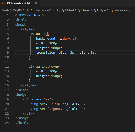| HTML+CSS (기초) transition 속성 이용하기 ( 마우스 커서 올렸을 시 커지는 효과) (0) | 2019.12.09 |