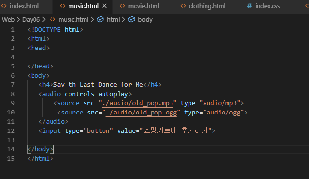 index.html에 이미 링크를 걸어두었지만, 만들지 않은 music.html 파일을 만들자.
