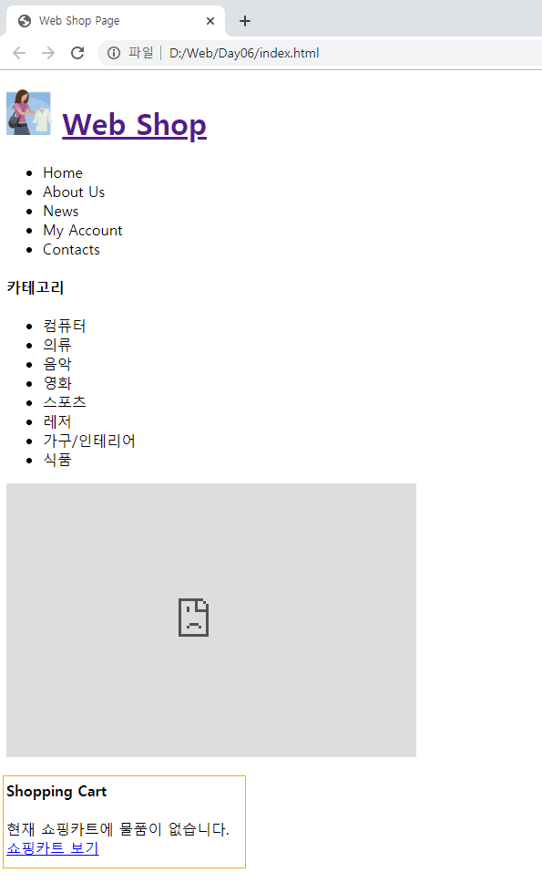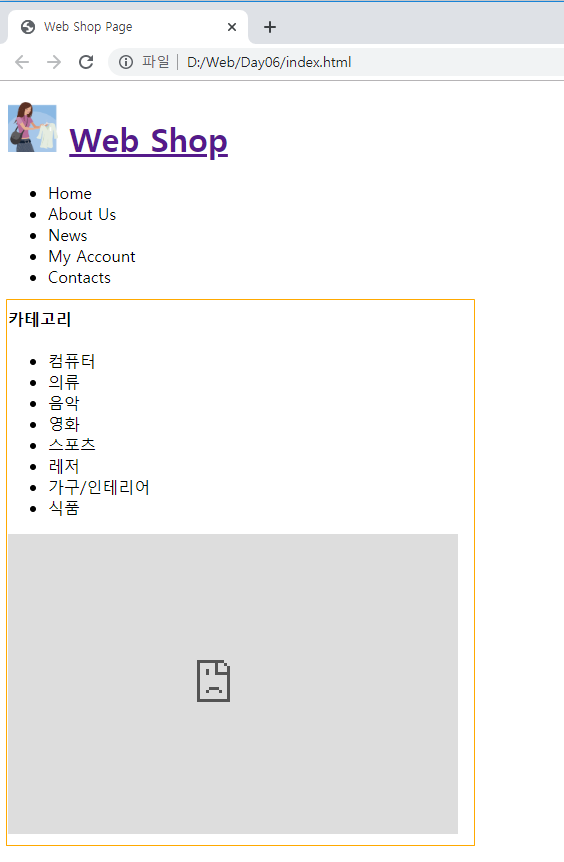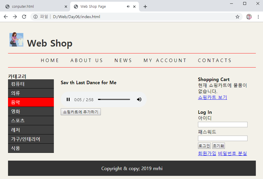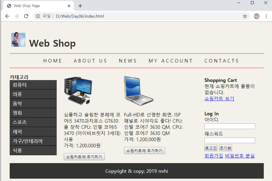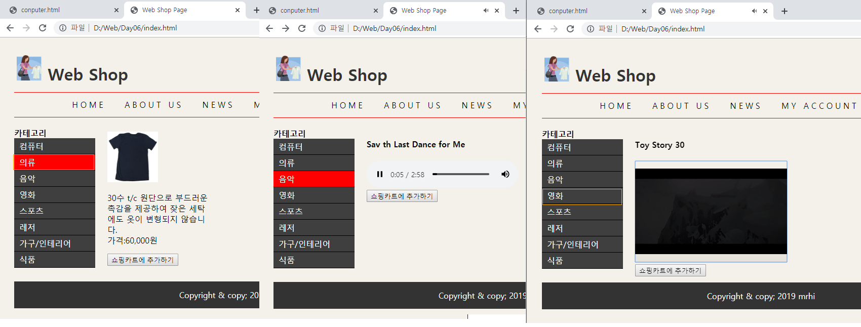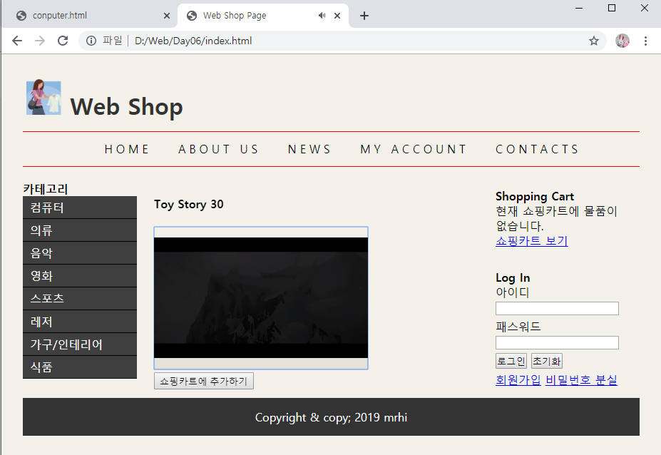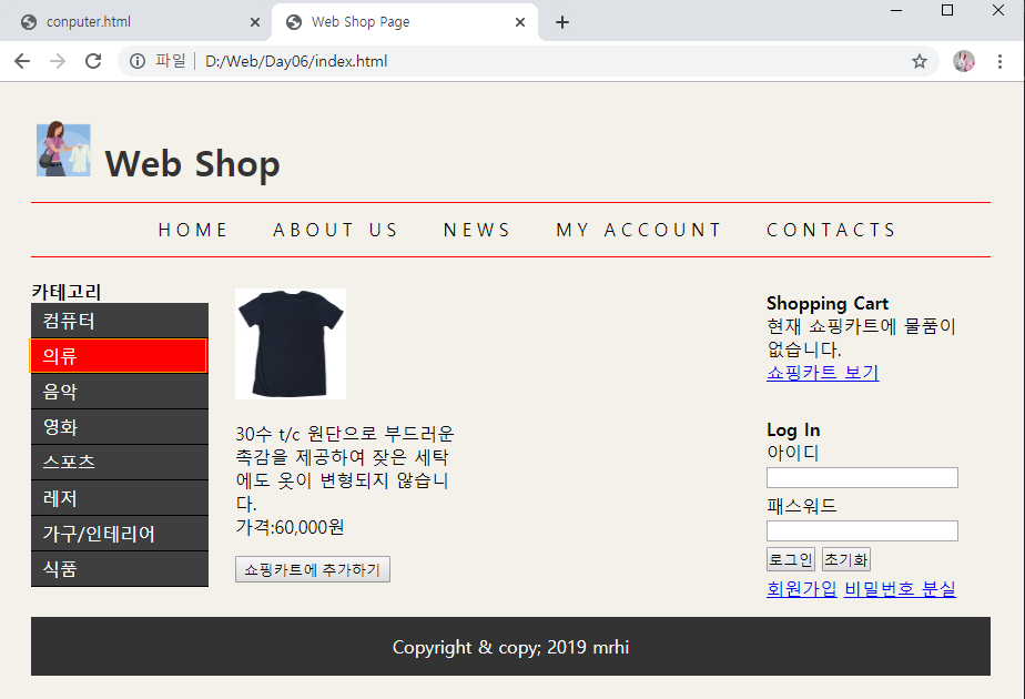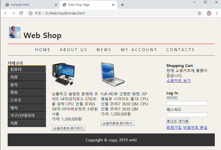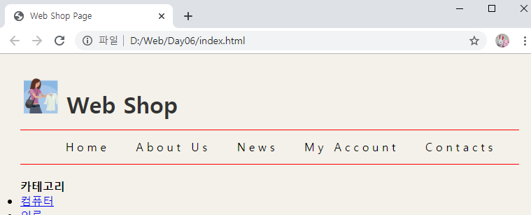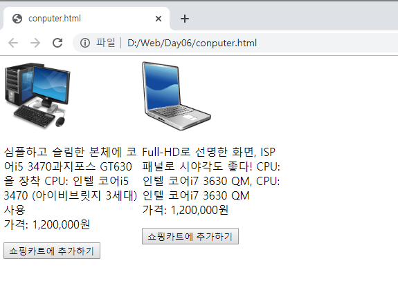 index.html을 브라우저로 열어서 컴퓨터 카테고리를 누르면 만든 computer.html문서 내용이 나온다.