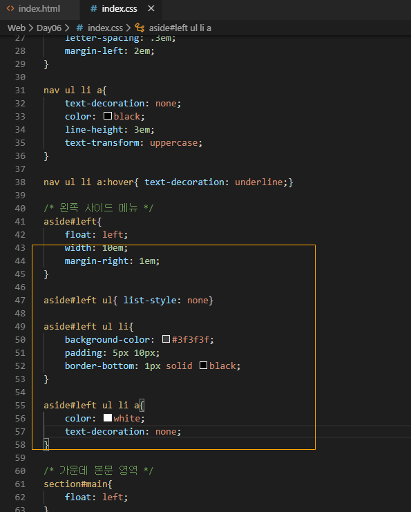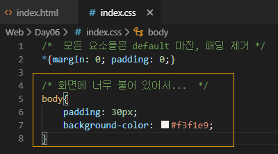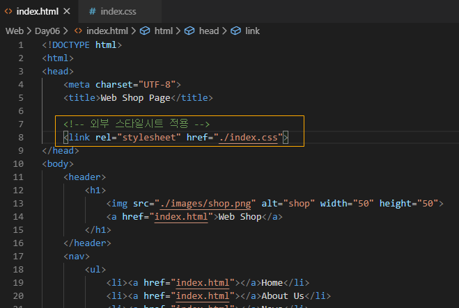 다시 index.html에 와서 만든 .CSS파일을 링크한다.