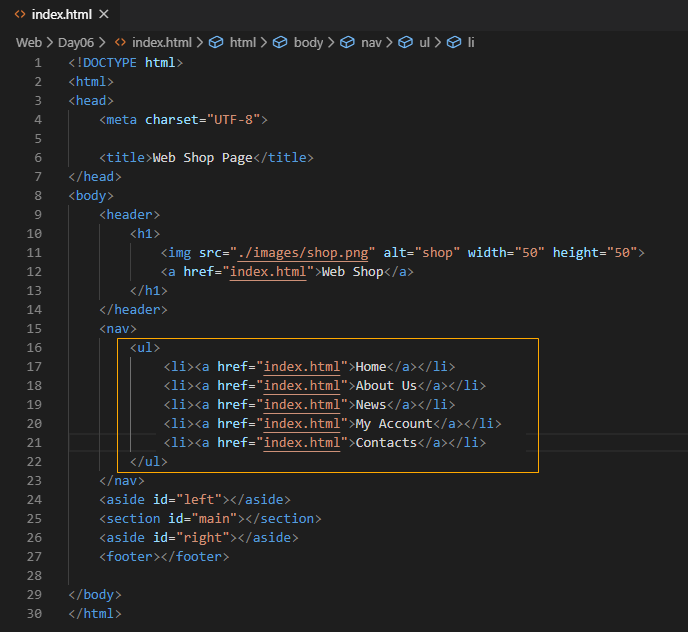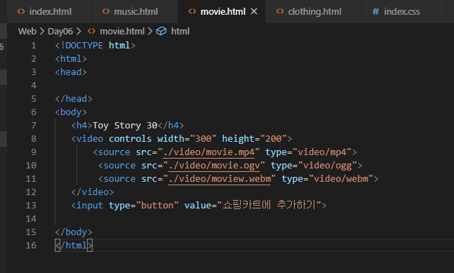 index.html에 이미 링크를 걸어두었지만, 만들지 않은 movie.html 파일을 만들자.