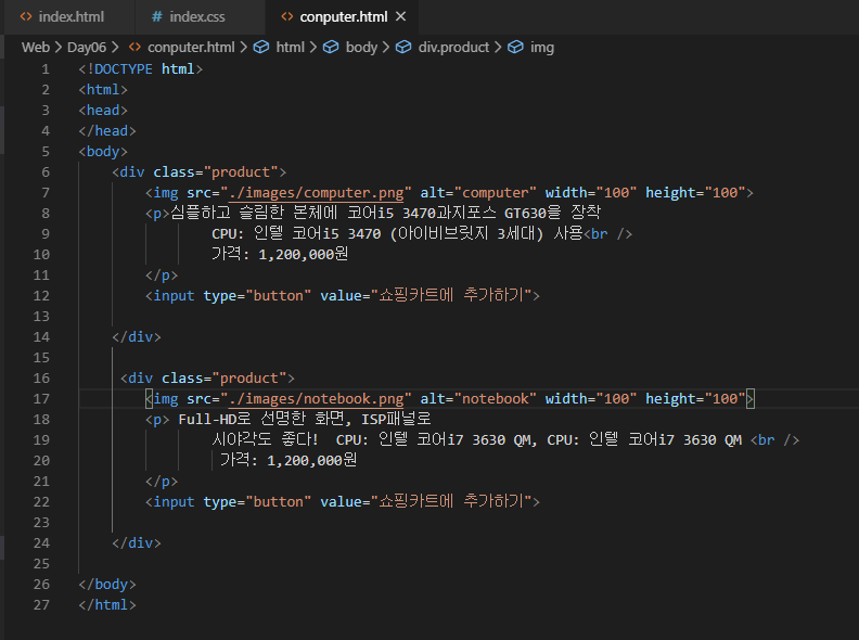 index.html에 이미 링크를 걸어두었지만, 만들지 않은 computer.html 파일을 만들자.