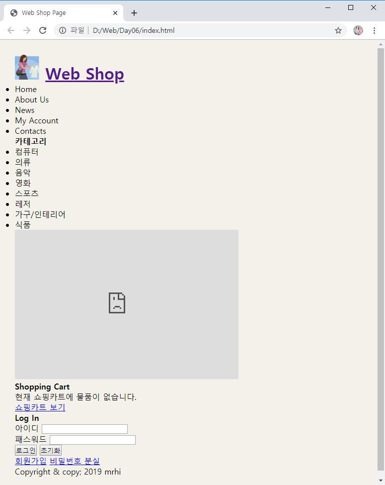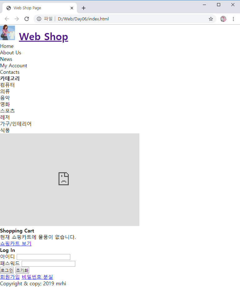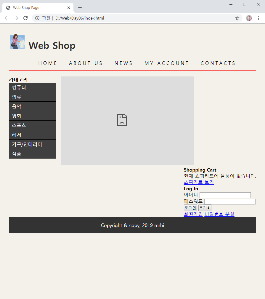 나머지 카테고리, 로그인, 회원가입 등등 기능은 코드를 작성하지 않았다. 맛보기로 알아본 것이다.