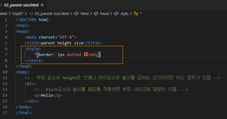 우선 블럭 요소가 부모 요소에 영향을 주는 것을 알아보자.