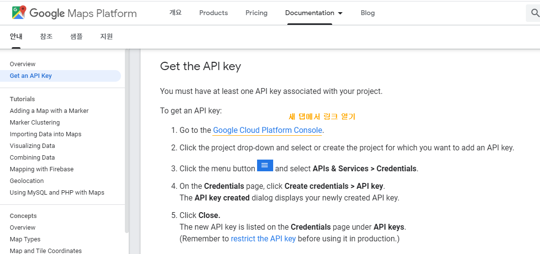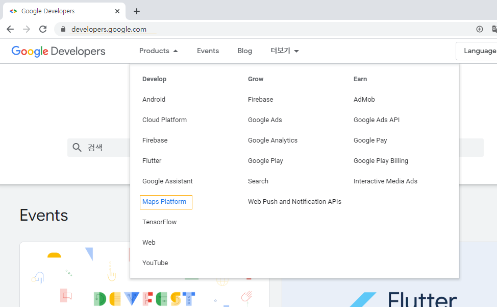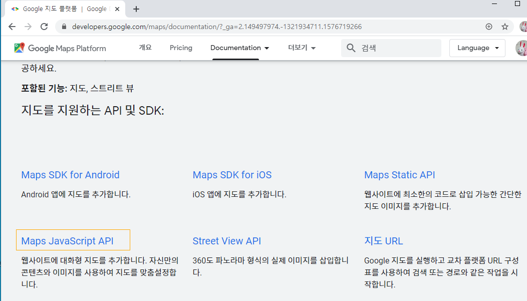 Products에 아무래도 지도니까 Maps Platform으로 들어가자.