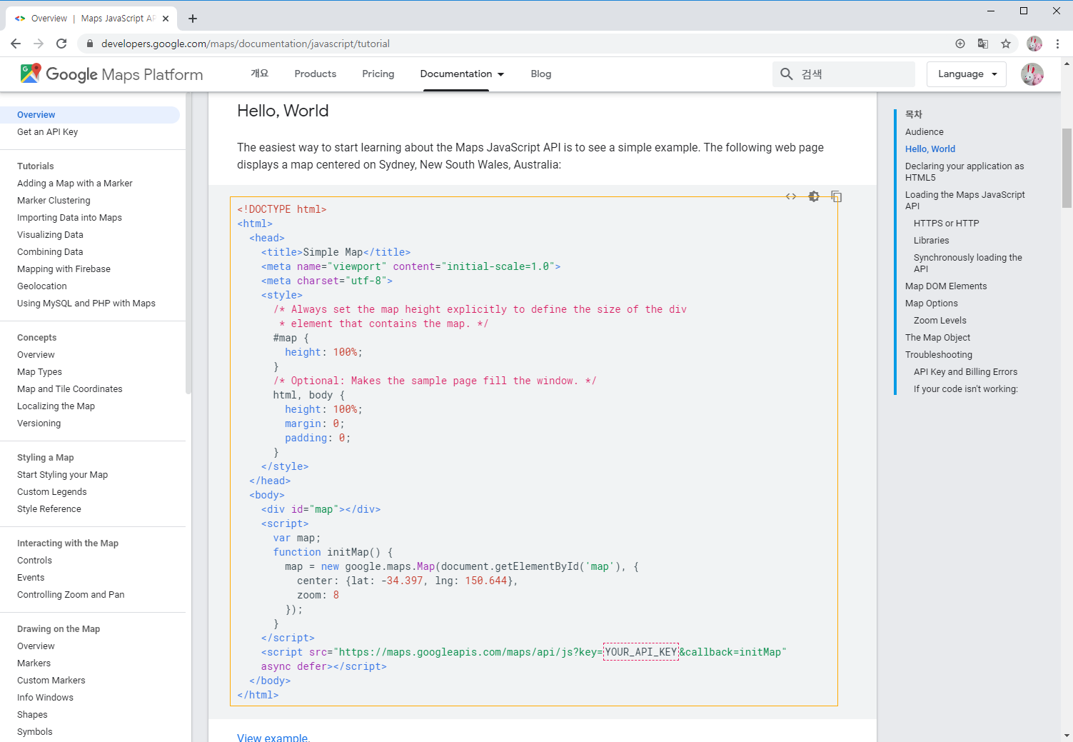 가장 기본적인 지도 표시 코드를 참고하여 작성해보자.