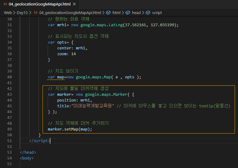 title:"미래능력개발교육원" // 마커에 마우스를 놓고 있으면 보이는 tootip(말풍선)