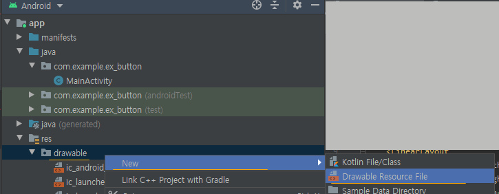 res->drawable (마우스 우클릭) -> new -> Drawable Resource File