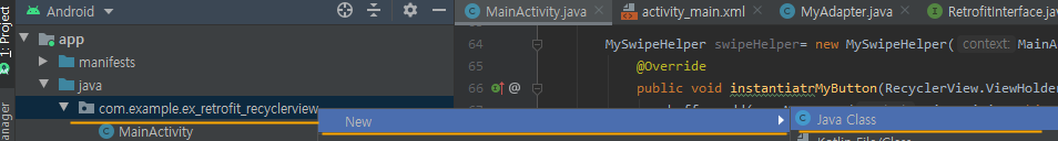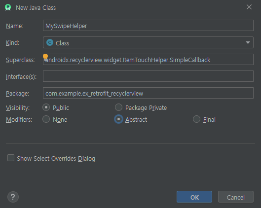 이제 MySwipeHelper 클래스를 만들어 줍니다.