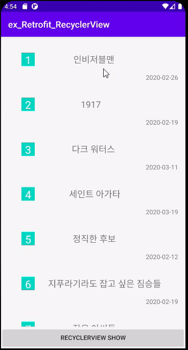 2020/03/22 - [안드로이드/개발자 일상] - 안드로이드 Retrofit2+RecyclerView 1-1(영화진흥위원회 오픈 API 이용)
