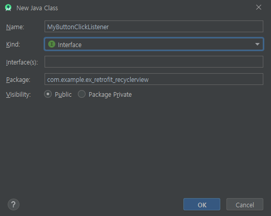 interface를 만들어 줍니다.