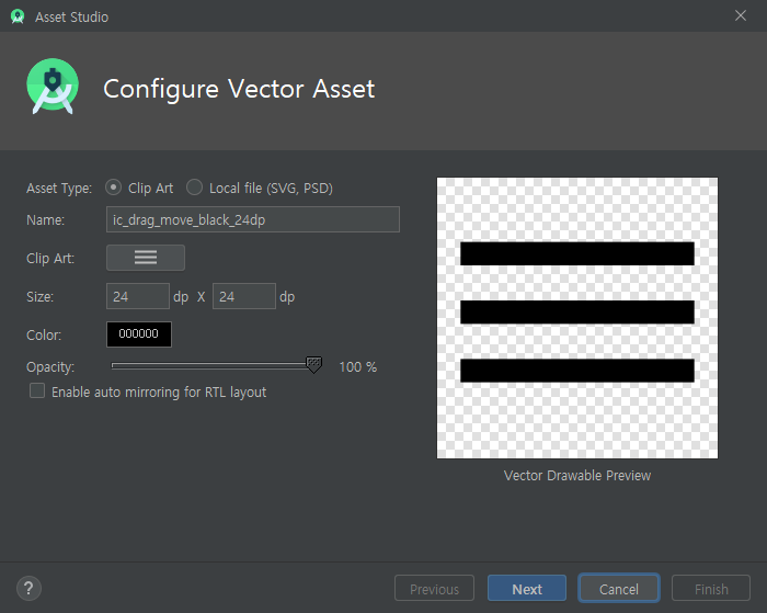 recyclerview_item.xml (이전 예제 추가 사항 : 45번 줄 Imageview 추가 및 삼선 이미치 적용)