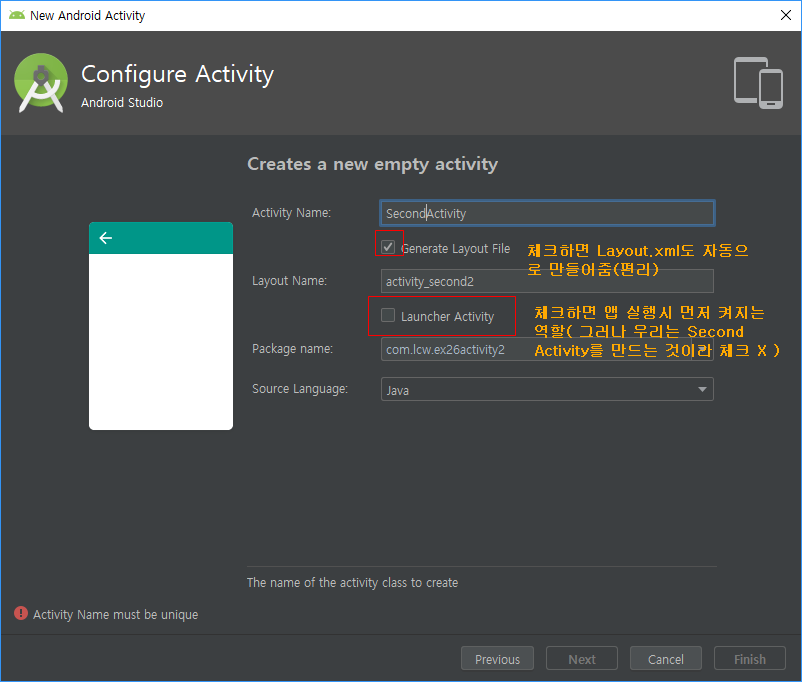 이제 SecondActivity 코드 작성