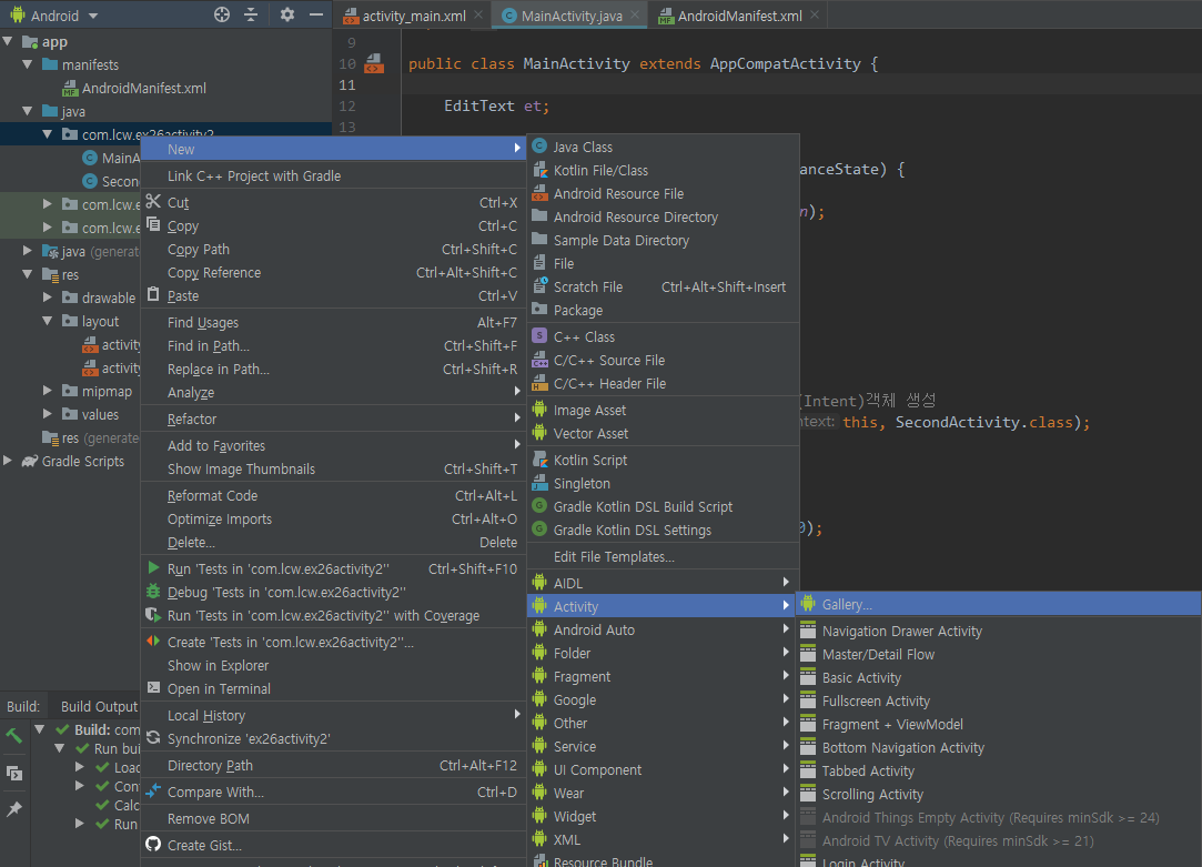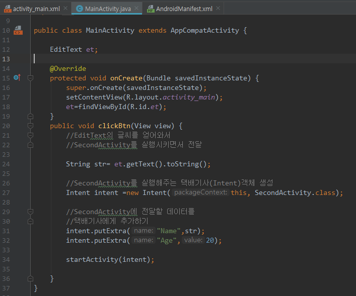 이제 다시 MainActivity로 돌아와서 코드 작성