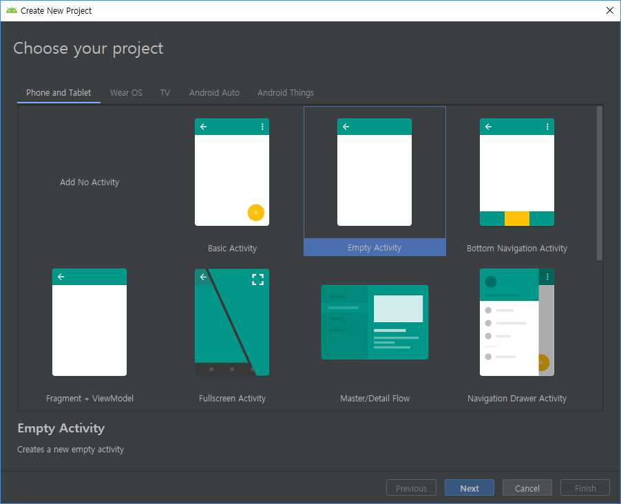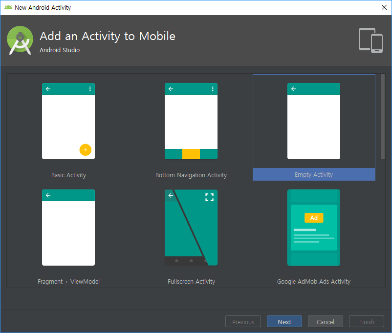 SecondAcivity를 만들자 레이아웃도 같이 우린 그걸 쉽게 만들 수 있다. (안드로이드에서 제공)
