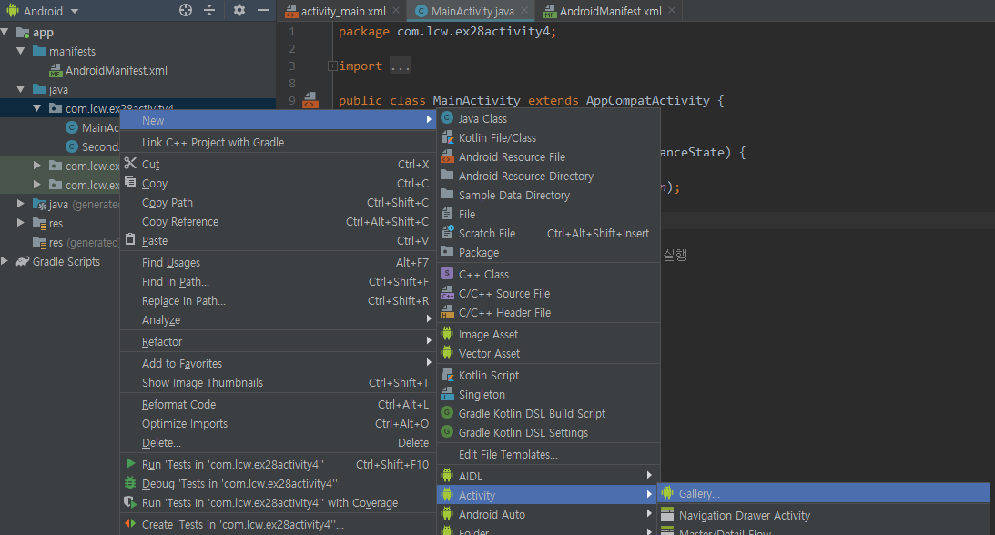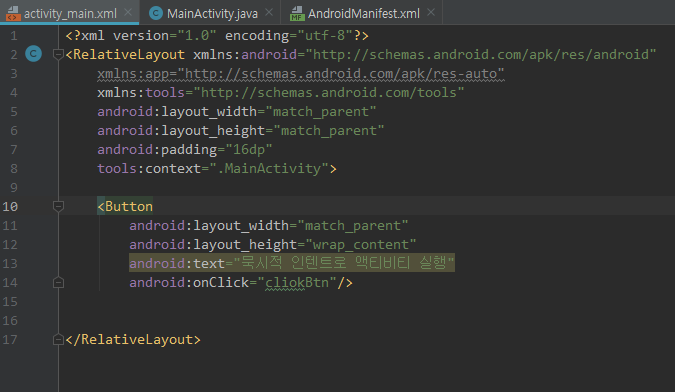 이제 MainActivity로 가서 코드 작성