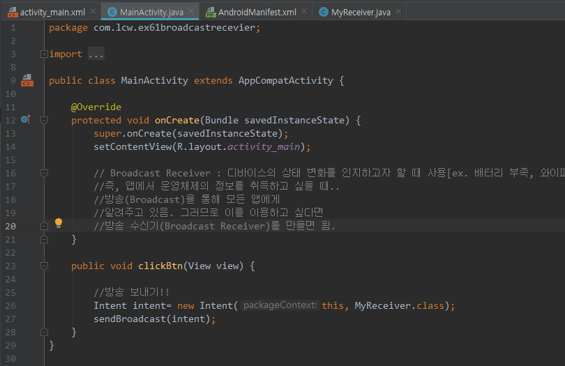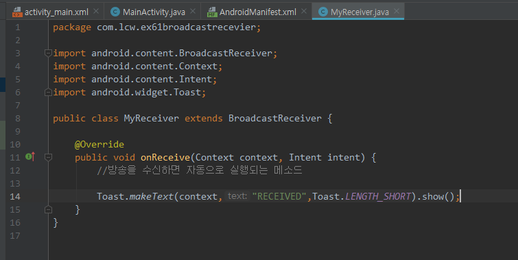 //방송 보내기!! [내 앱안에 있는 리시버 실행하기.]
