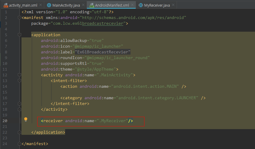 intent.setAction("aaa"); //"aaa"라는 액션 방송을 듣는 모든 리시버 반응해라.